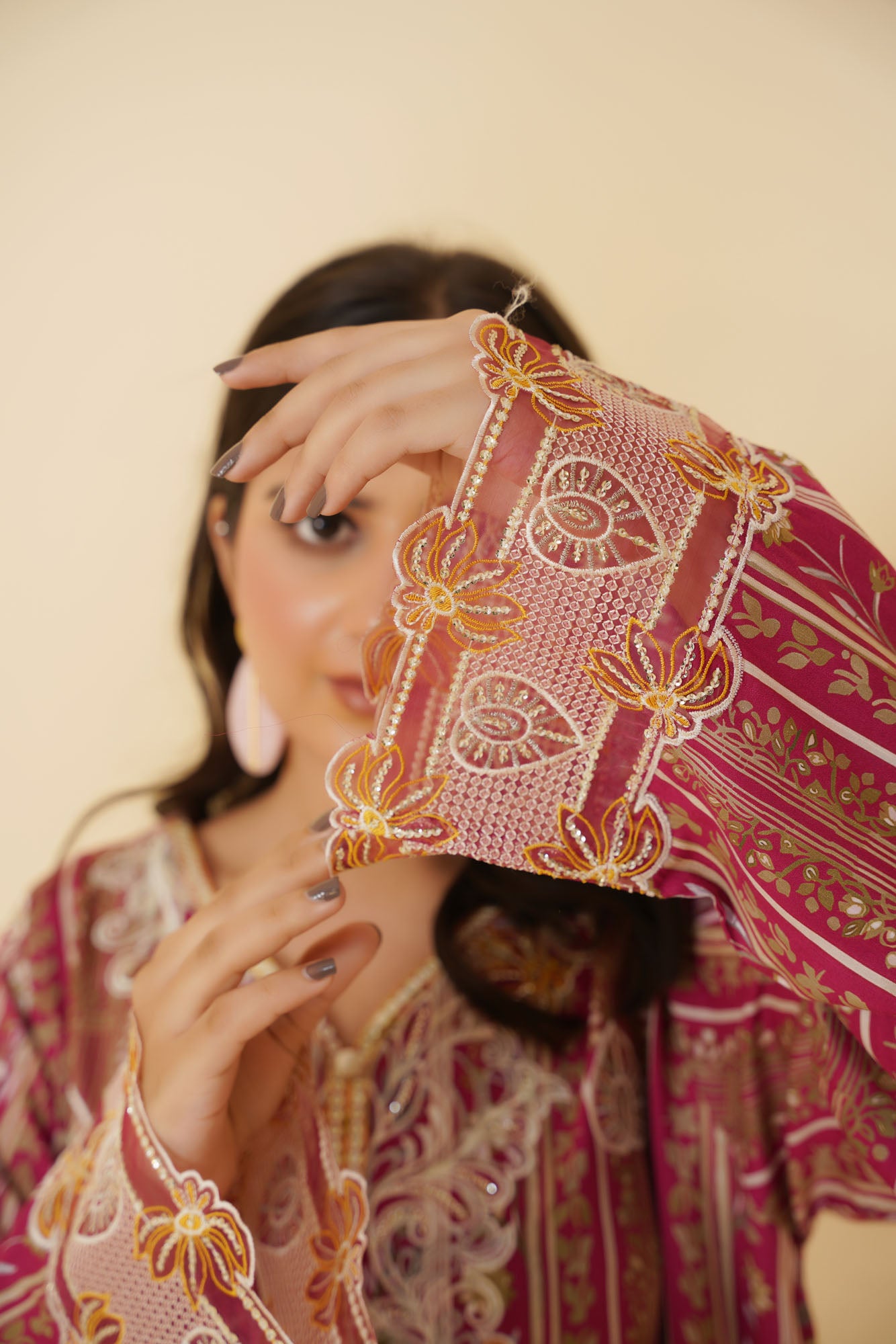 Step into effortless grace with this embroidered and printed 3-piece stitched suit, beautifully crafted from premium Lilan fabric to keep you warm, comfortable, and stylish all season.